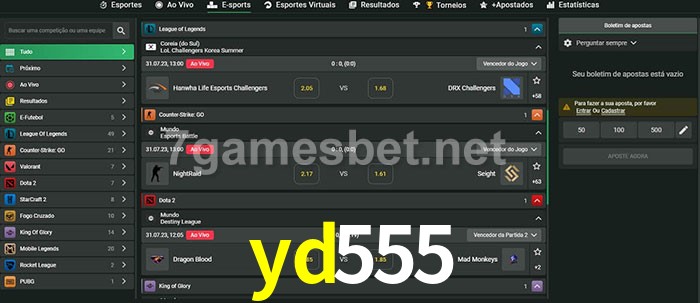 O yd555 oferece uma grande seleção de opções de apostas em e-sports com probabilidades competitivas
